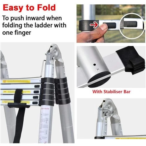 ✔ Mécanisme de verrouillage facile avec boutons de pouce. Entre deux étapes voisines avec la touche de verrouillage stable. Rendre l’échelle télescopique plus stable, plus sûr.