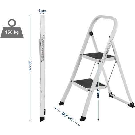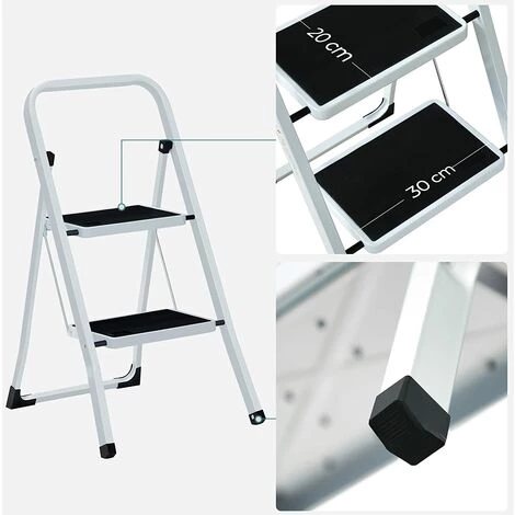 - Stabilité avant tout : Cet escabeau en acier solide avec barre de sécurité et 4 pieds orientés vers l’extérieur assure une bonne stabilité. Une fois complètement déplié, le crochet de sécurité s’enclenche pour l’empêcher de se plier