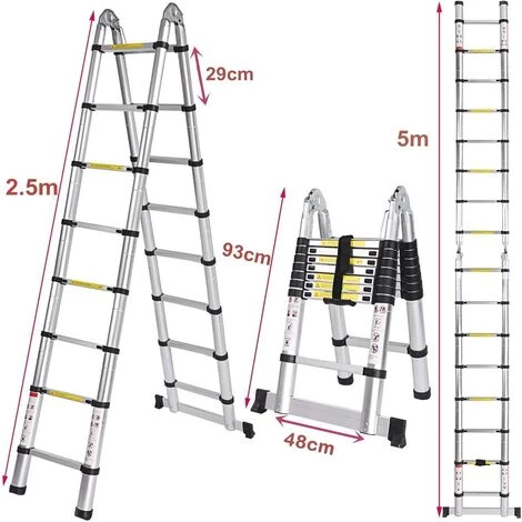 Échelle faite d’aluminium de haute qualité, antirouille et durable. Il peut atteindre une capacité de charge maximale de 150 kg.