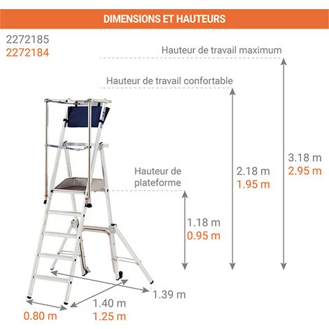 – Rigidité et stabilité : stabilisateurs sur plan de montée et béquille (fixes du 2 au 4 marches, repliables et indépendants pour travailler le long d’une paroi pour le 5 marches).