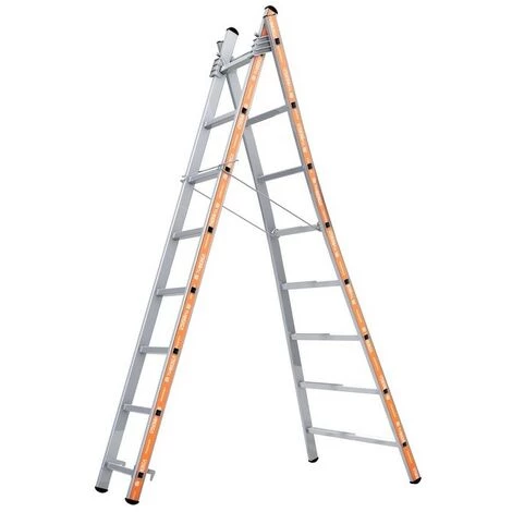 L’échelle Pronor transformable 2 plans aluminium dispose d’une base évasée, d’articulations en fonderie d’alu et d’un bras anti-écartement en acier garantissant ainsi fiabilité et confort.