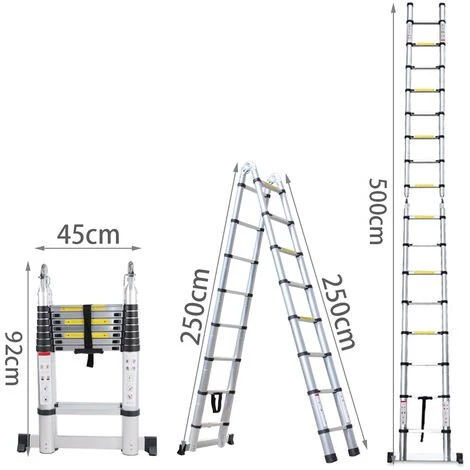 2. Sûr et portable : l’échelle télescopique est conçue avec des matériaux solides et aluminium durable.