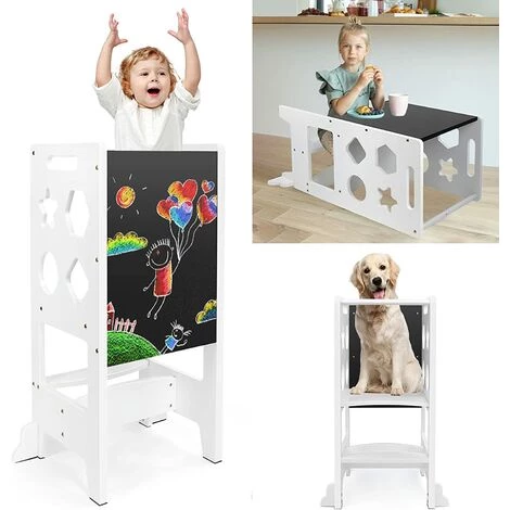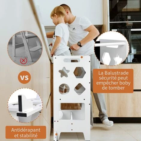 YOLEO Tour D’apprentissage En Bois, Tour D’observation Pour Enfants, Montessori Learning Tower, Marchepied Pour Bébé Avec Tableau Noir – Blanc étoile